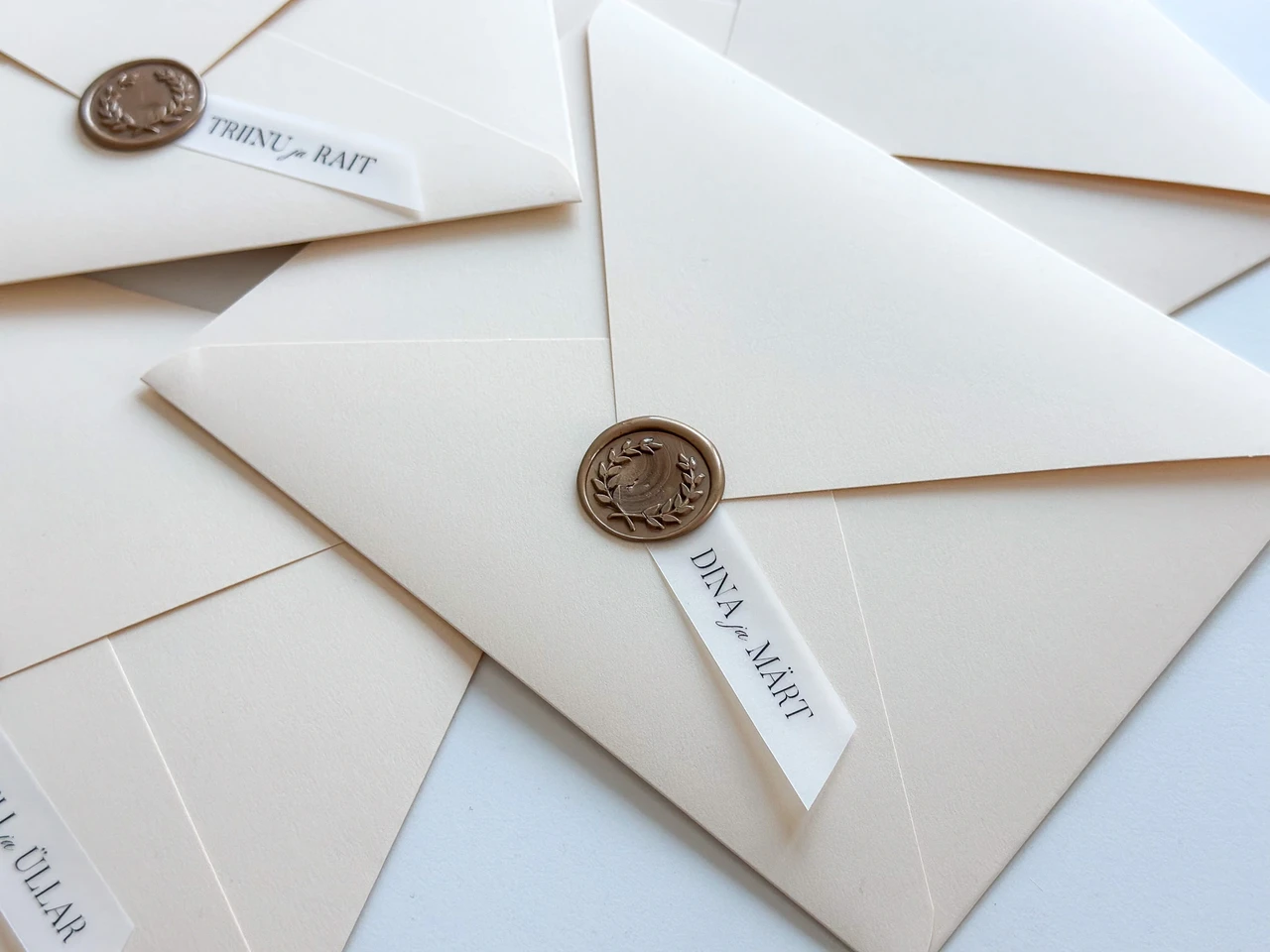 Kutse mõõdud 14x19cm sisu saab trükkida kutse mõlemale poole (tagumisel küljel lisainfo) või kasutada eraldi lisainfo lehte. Kutse ümber kalkapaberist ümbris, kinnitatud vahapitseriga. Kalka paberile võimalik trükkida ornamendid.