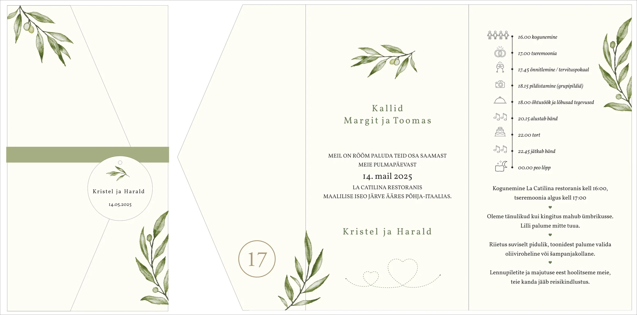 Tellimiseks vali välja kutse kujundus ning sobivad fondid.